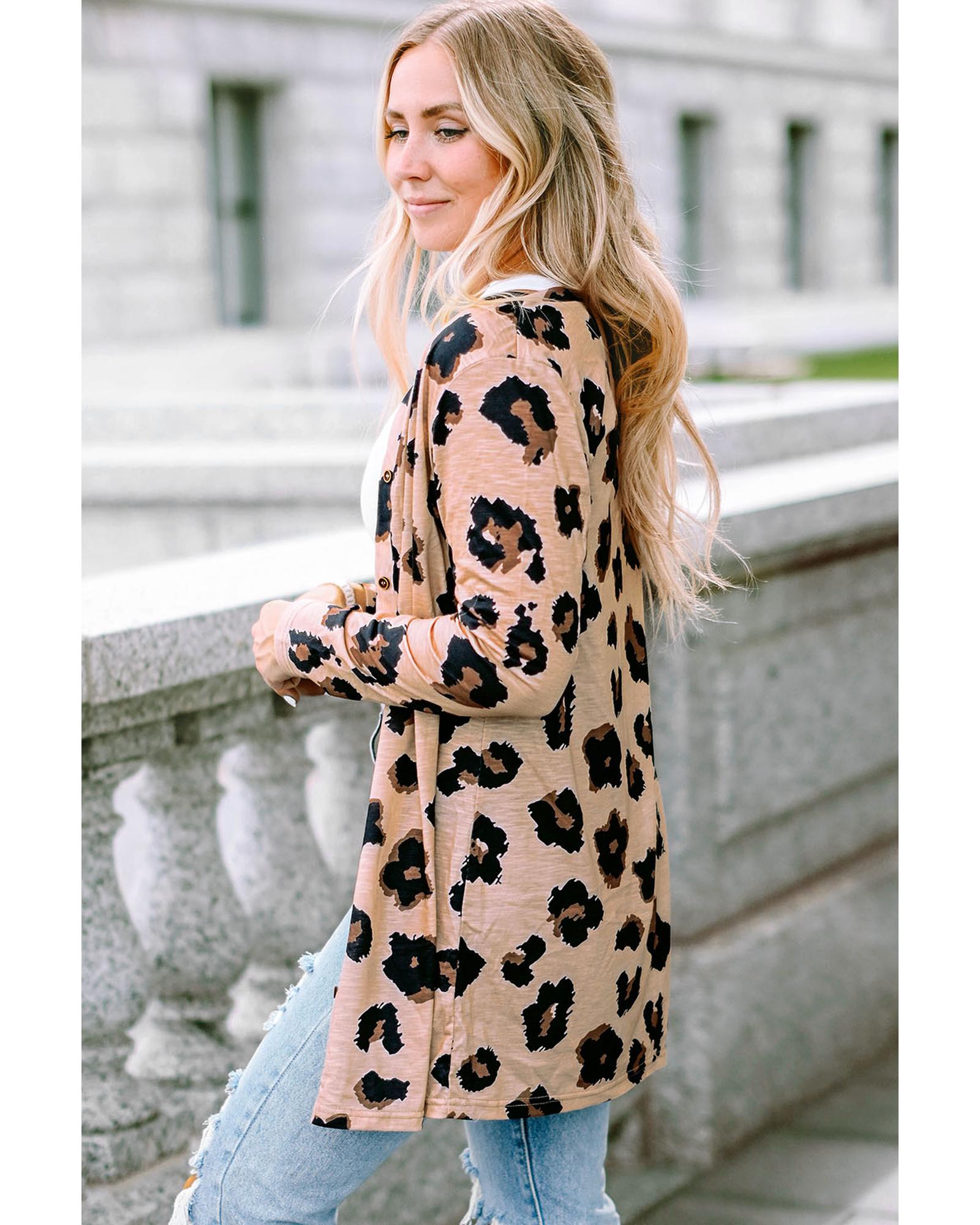 Leopard Printed Open Front Cardigan – M