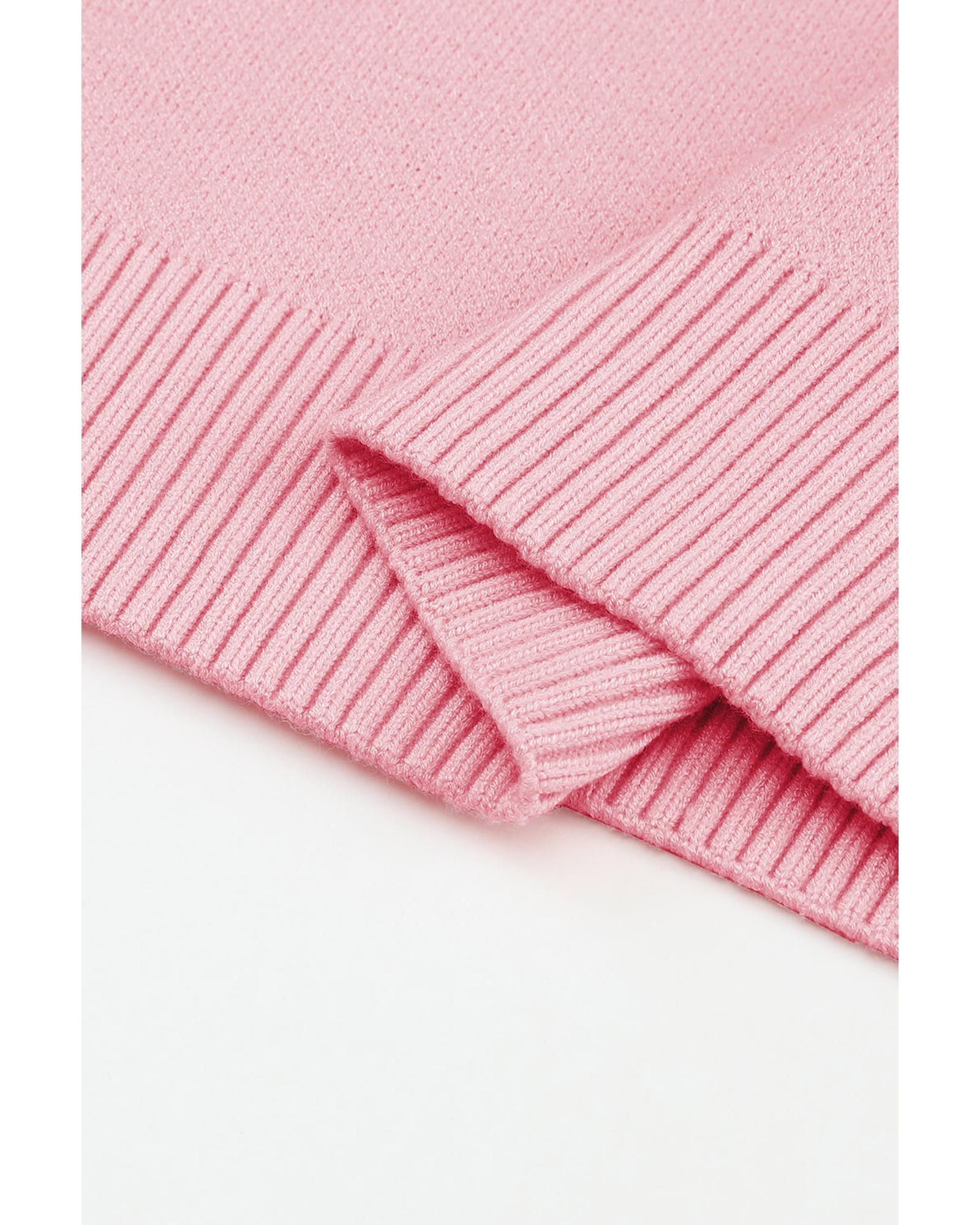 Pink Heart Shape Bubble Sleeve Baggy Sweater – M
