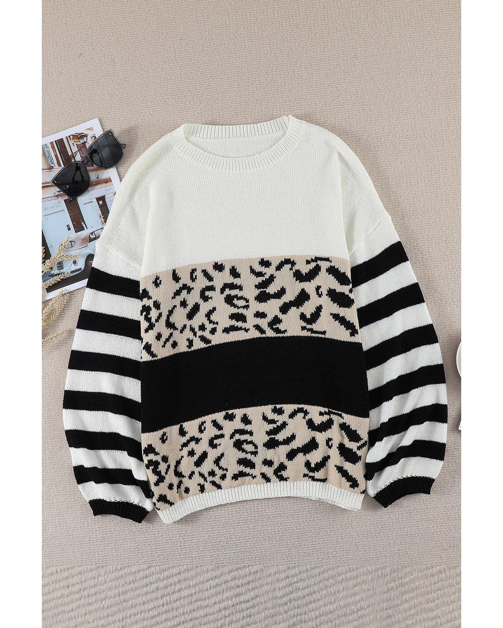 Slouchy Drop-shoulder Leopard Striped Colorblock Sweater – S