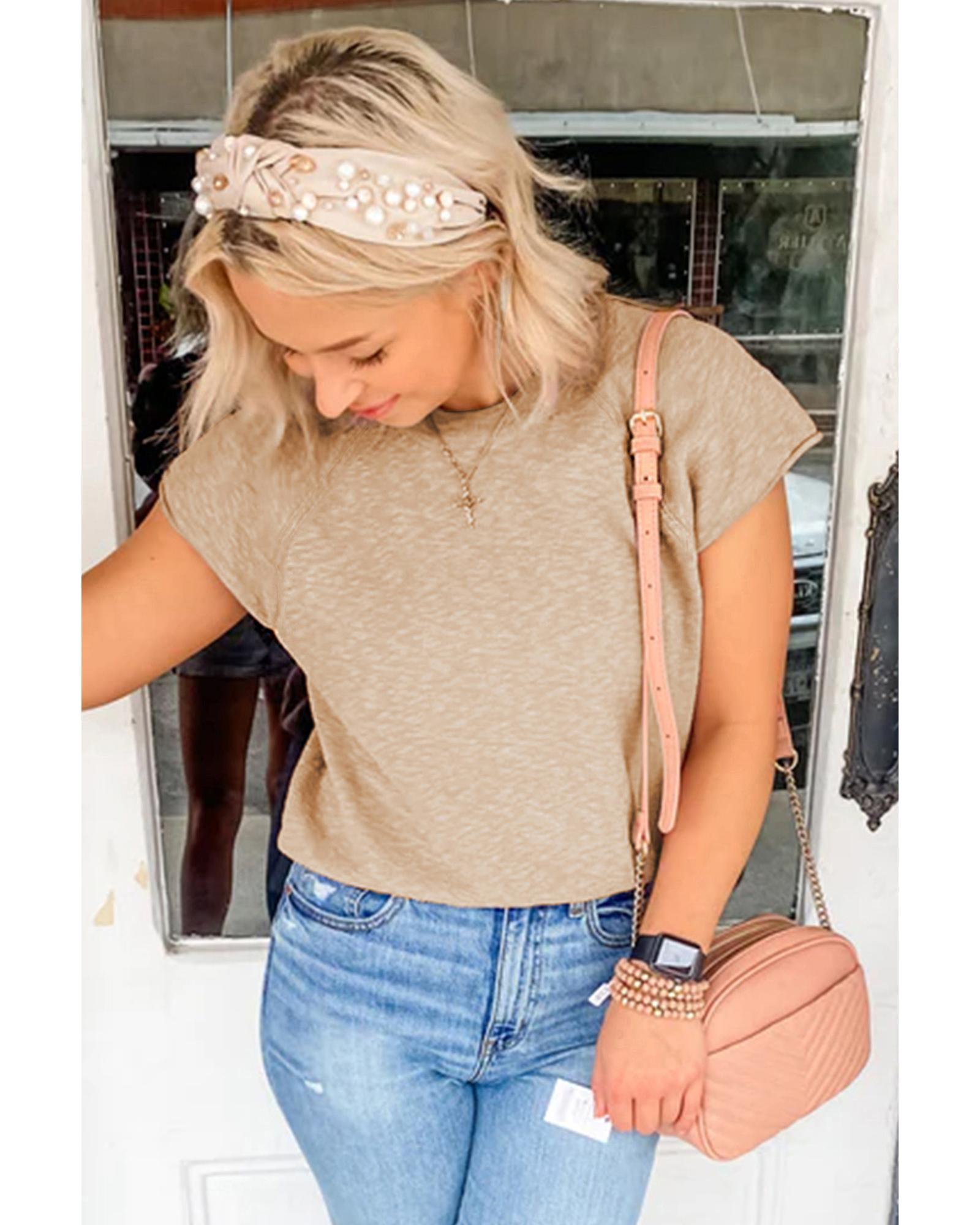 Smoke Gray Ribbed Raglan Short Sleeve Sweater – M