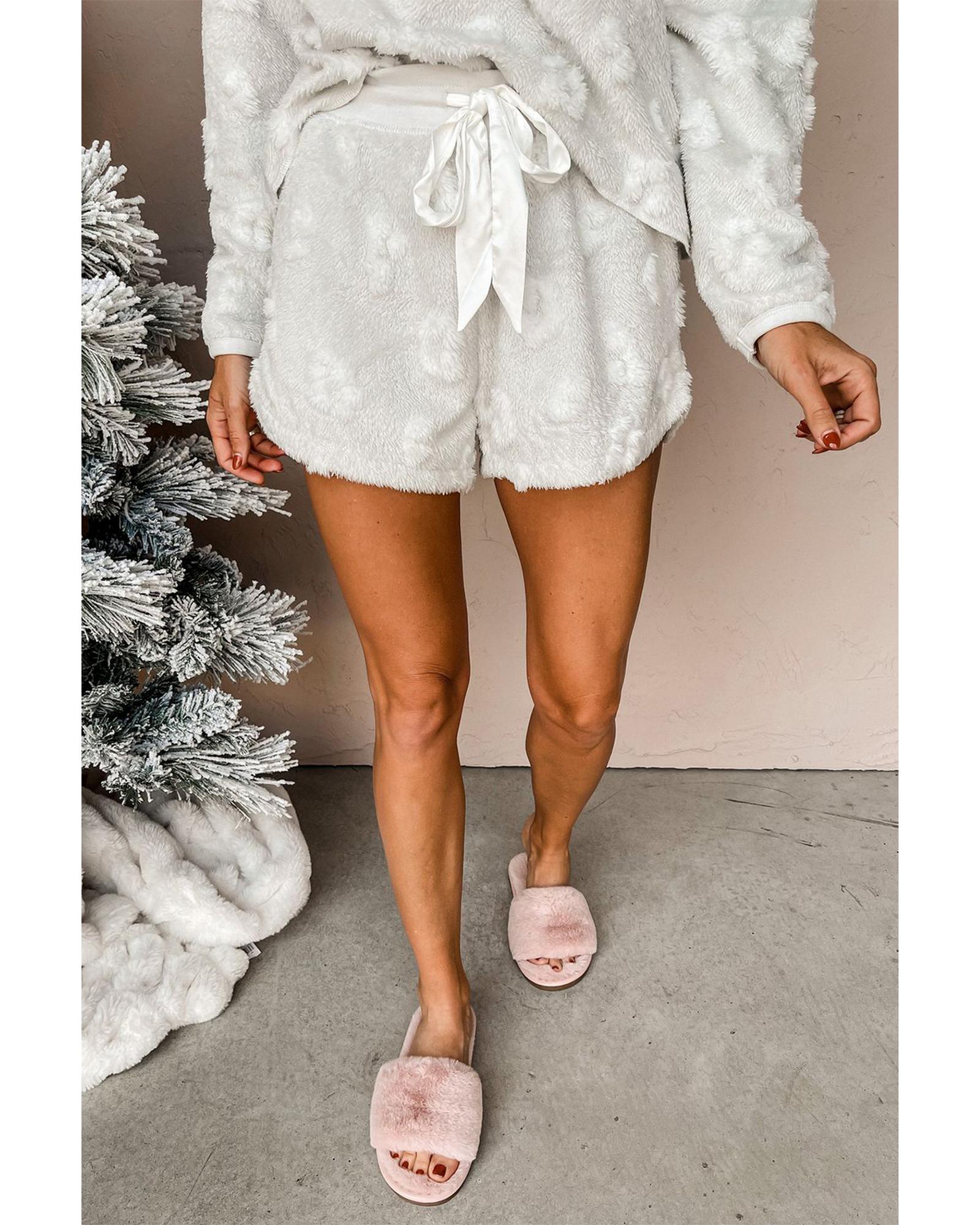 Light Grey Leopard Textured Loose Fit Fleece Lounge Set – L