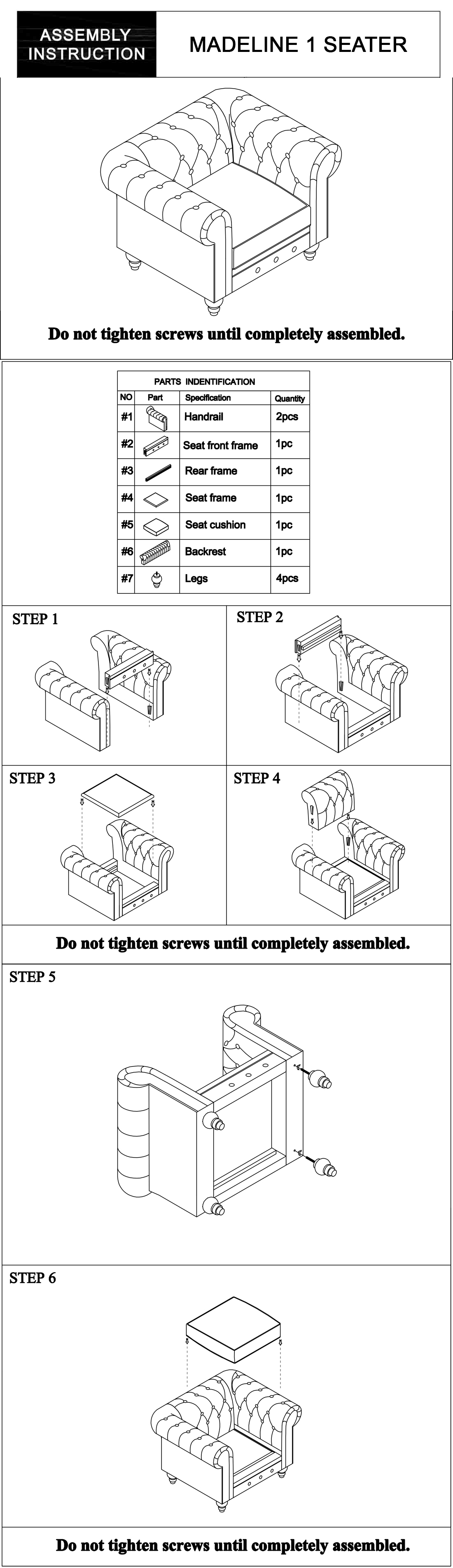 Single Seater Black Sofa Classic Armchair Button Tufted in Velvet Fabric with Metal Legs