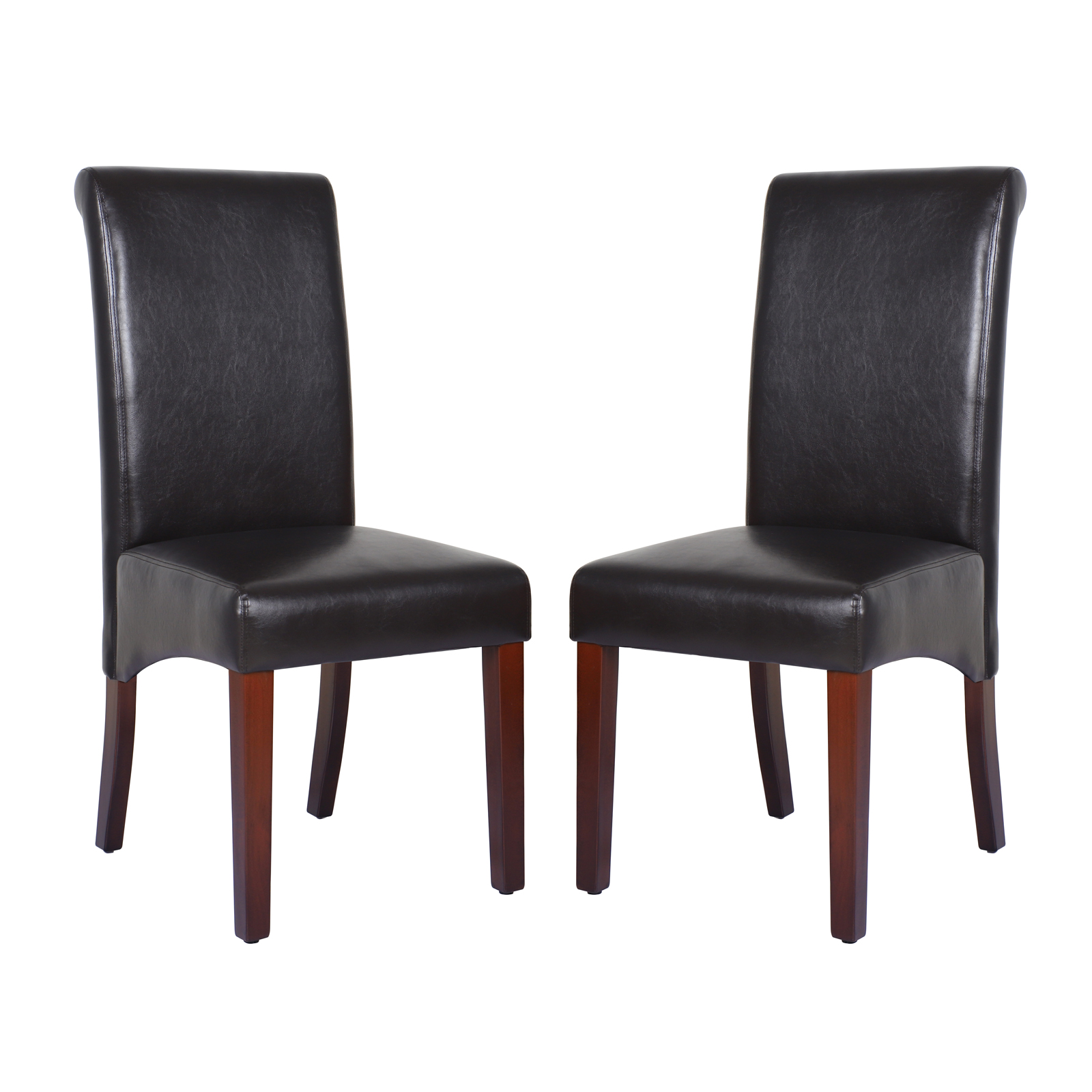 2x Wooden Frame Brown Leatherette Dining Chairs with Solid Pine Legs
