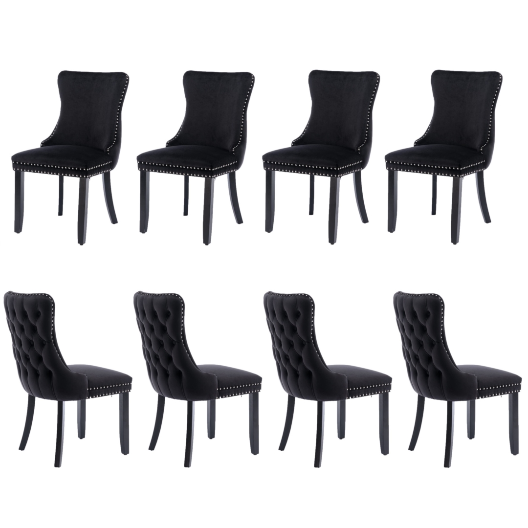 8x Velvet Upholstered Dining Tufted Chairs with Studs Trim and Solid Wood Legs-Black