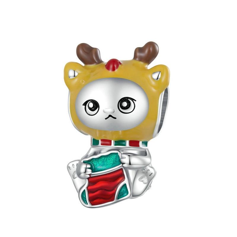 925 Sterling Silver Christmas Sock Cat Beads For Diy Bracelets & Necklaces