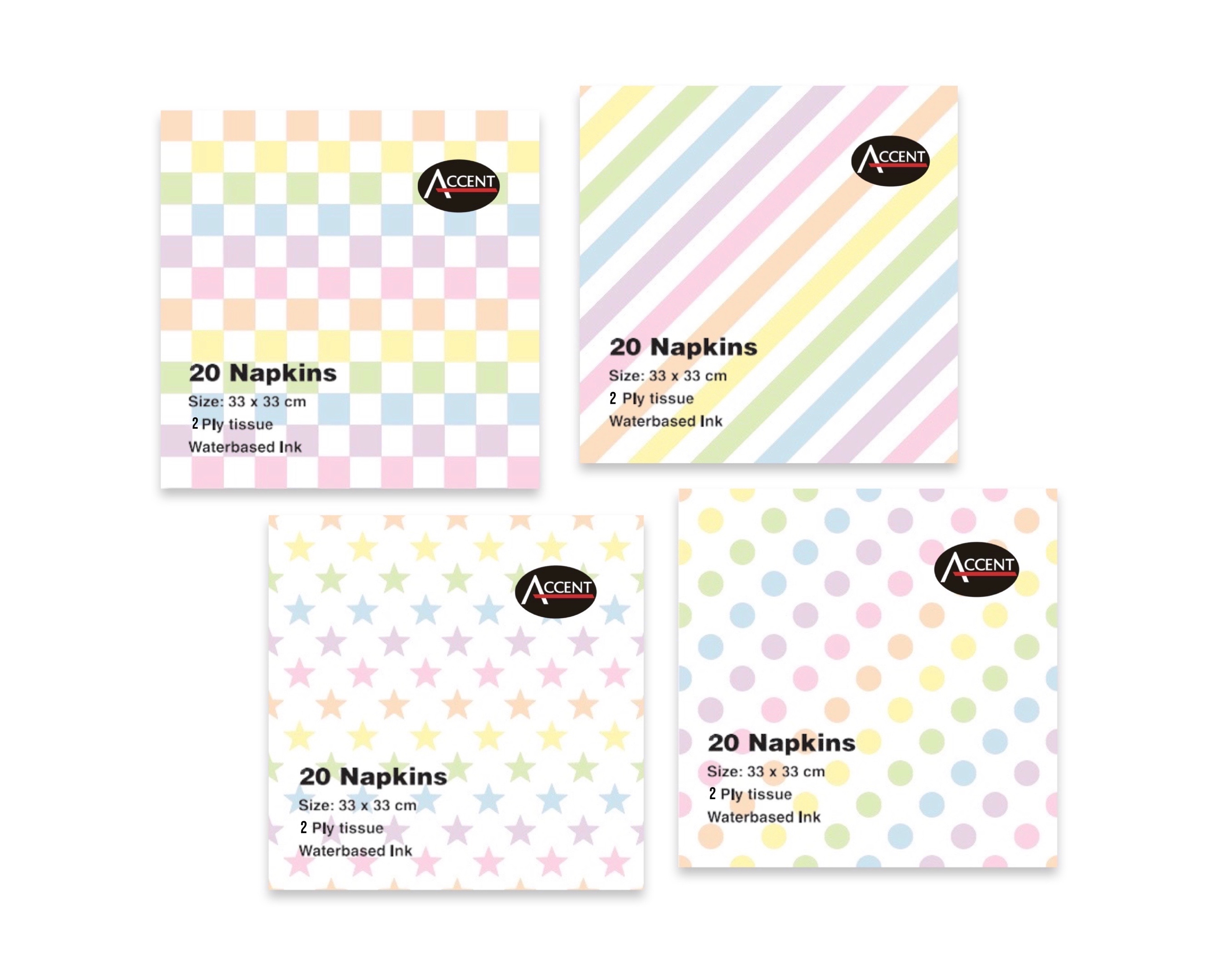 bulk 960 Dots Stars Gingham Diagonal Stripes Napkin 2ply Assort 33cm