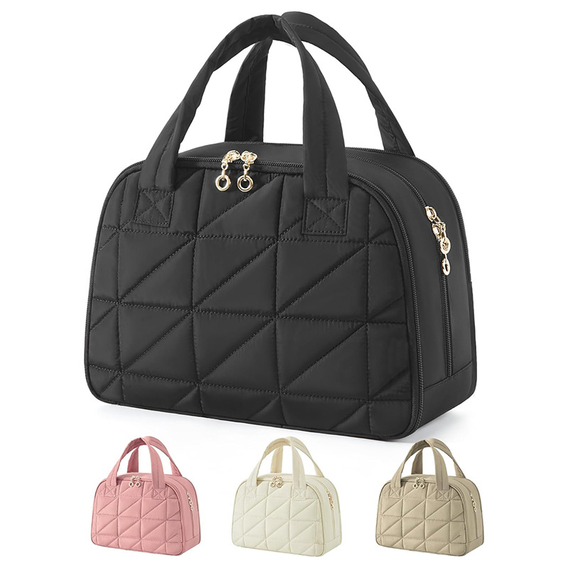 Black Checkered Cosmetic Bag with Handle – Stylish, Compact, and Practical for Travel