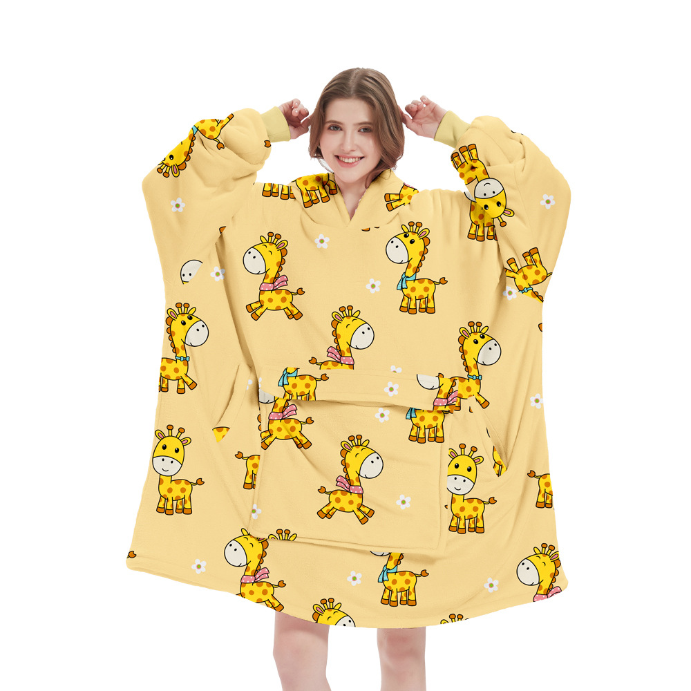 Yellow Giraffe Oversized Wearable Blanket Hoodie – Ultra Soft & Cozy Snuggle Pullover for Adults