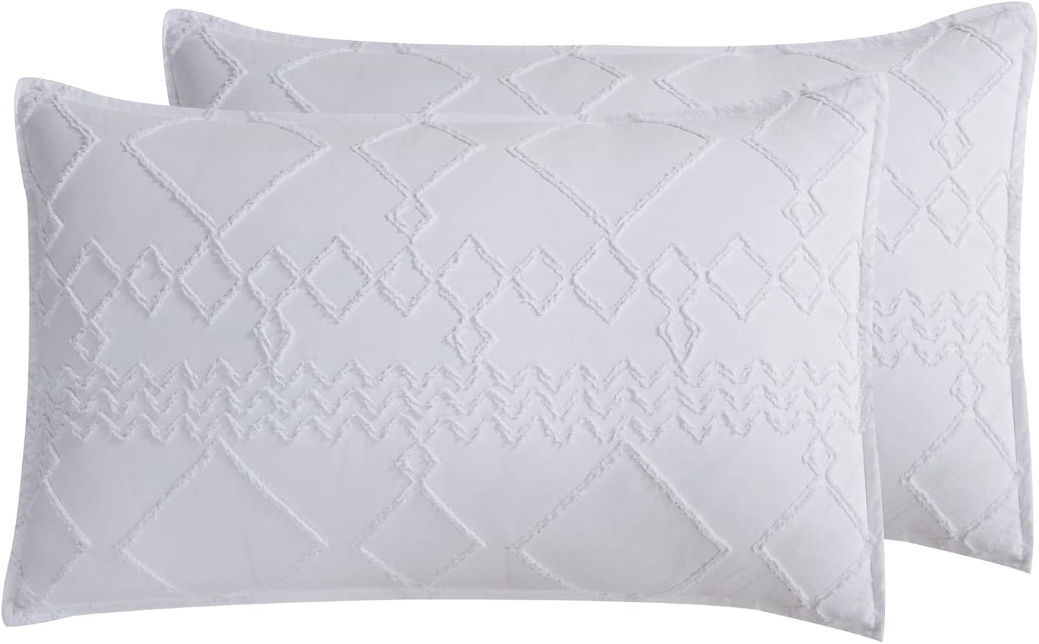 TUFTED MICROFIBRE SUPER SOFT TWIN PACK STANDARD PILLOWCASES-WHITE