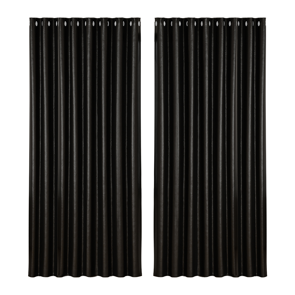 Artiss 2X Blockout Curtains Eyelet 240x230cm Black Shine