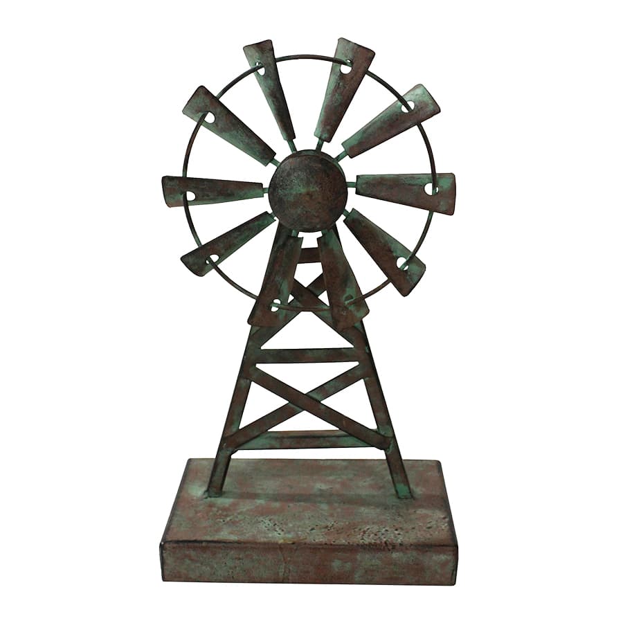 Decorative Galvanised Windmill Ornament on Base 26cm
