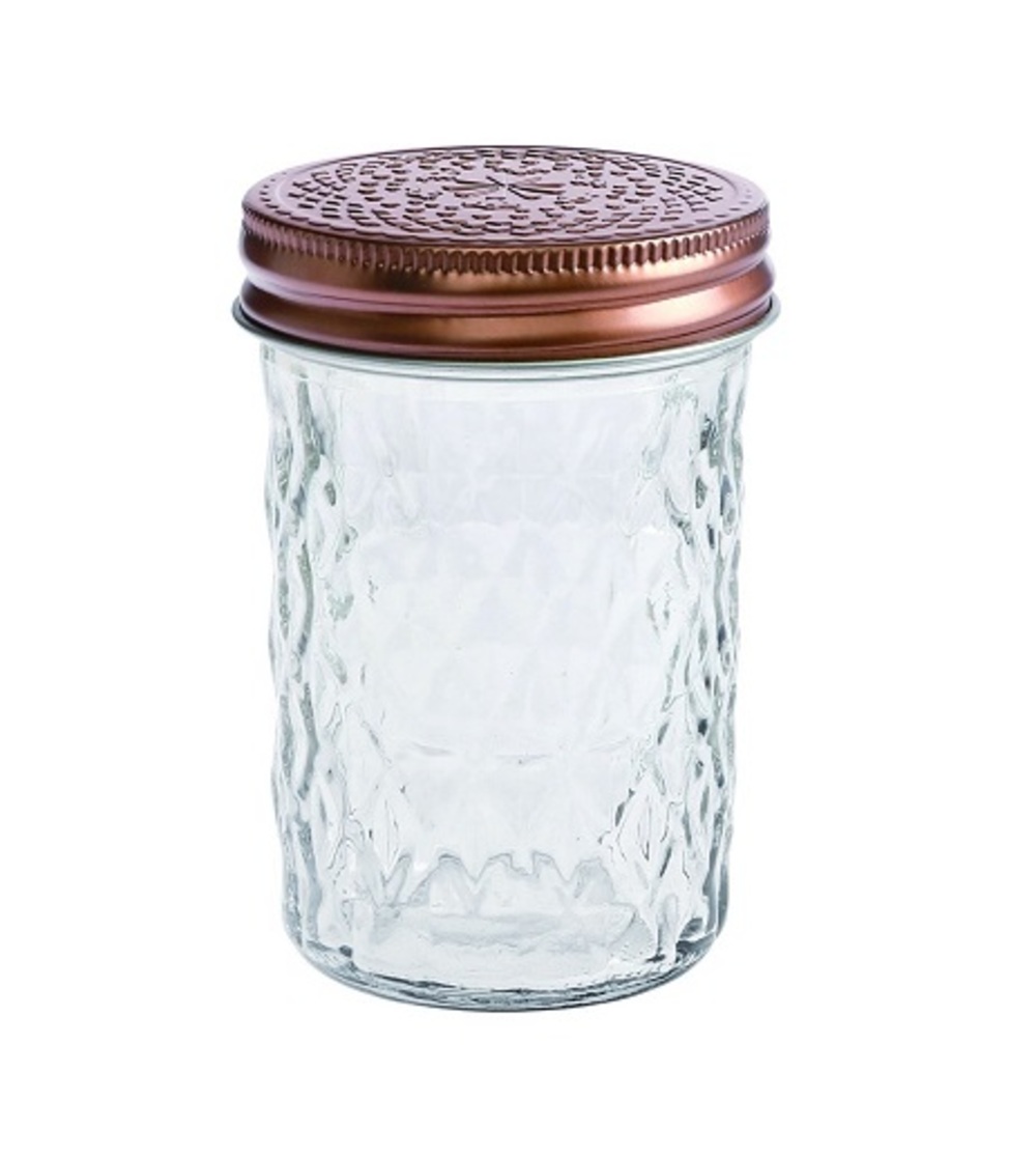 bulk 24 Large Diamond Look Glass Jar w Rose Gold Lid 13cm