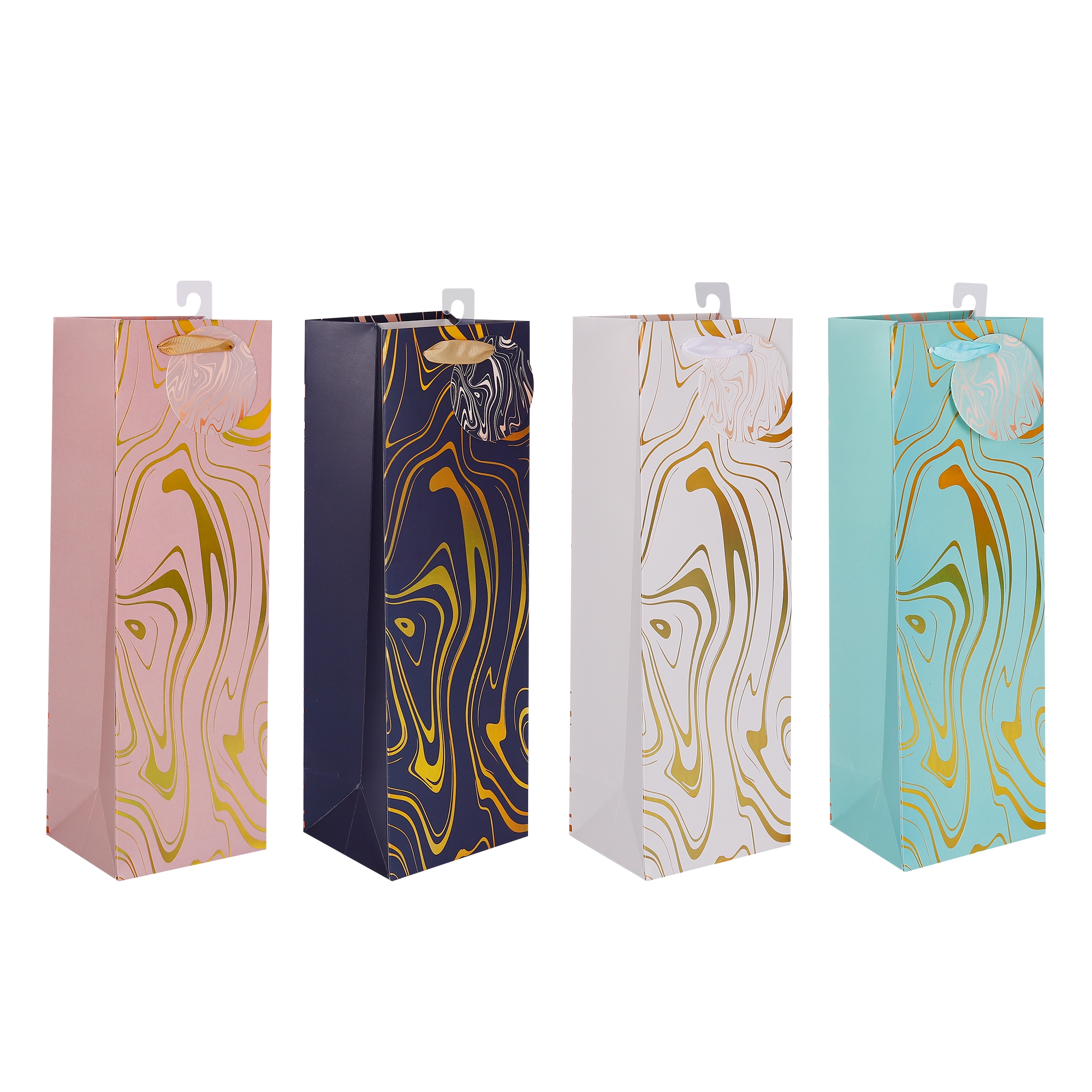bulk 24 Marble Flow Bottle Gift Bag Foiled Btl 4 Assorted 12x36cm