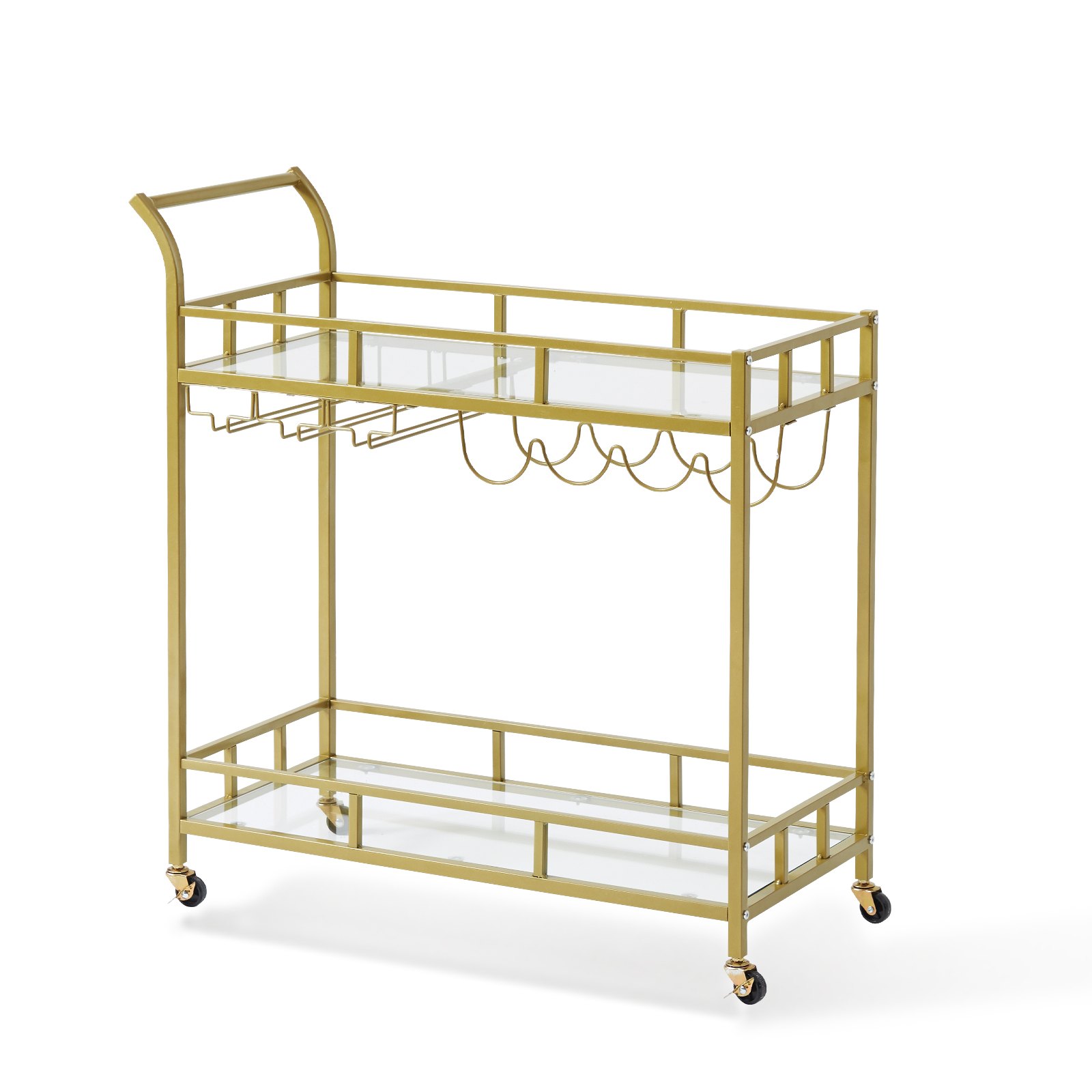 VEVOR 2 Tiers Gold Metal Bar Serving Cart with Wine Rack Glass Holder 120 LBS