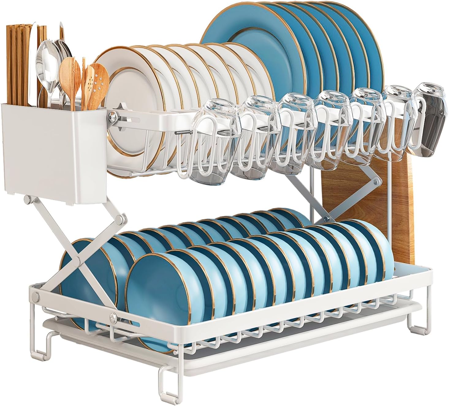 Dish Drying Rack 3 Tier Large Capacity Kitchen Storage with Utensil and Cutting Board Holder