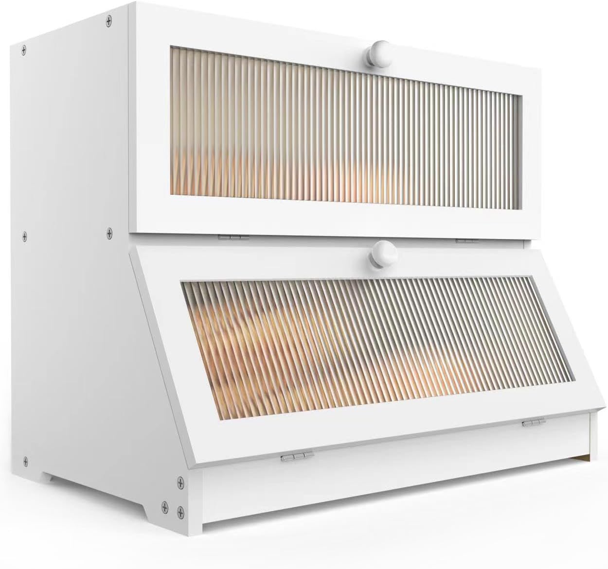 CARLA HOME Large Bamboo Bread Box Storage Organizer with Roll Top for Kitchen Counter
