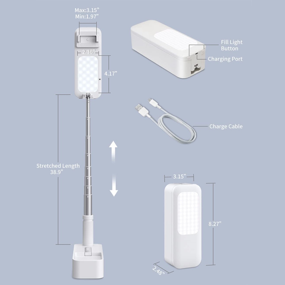 LED Portable Phone Holder Stand Wireless Remote Dimmable Selfie Fill Light Lamp White
