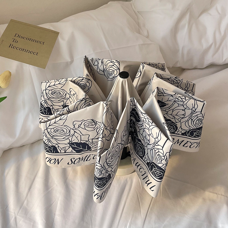 Wild Rose Mini 5-Fold Umbrella – Portable, Anti-UV, Black Glue Coating