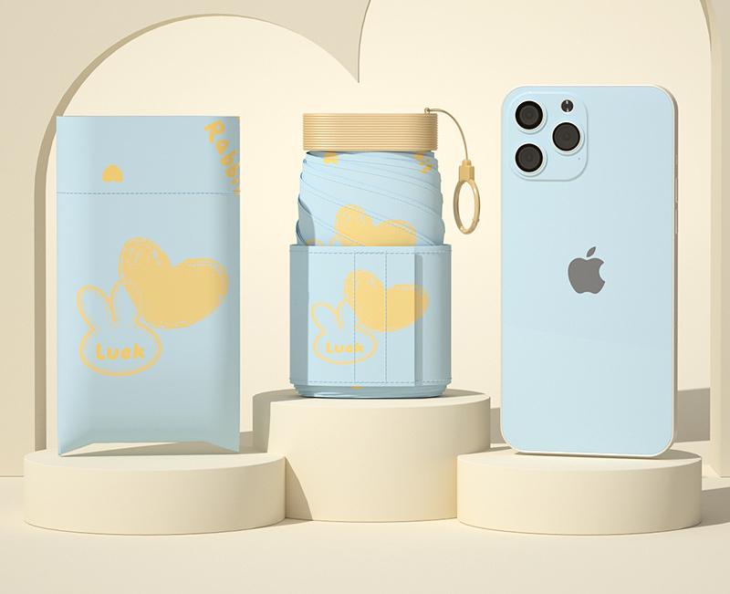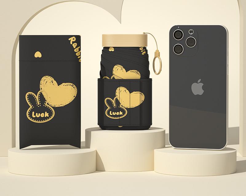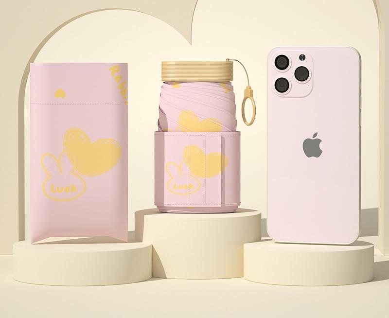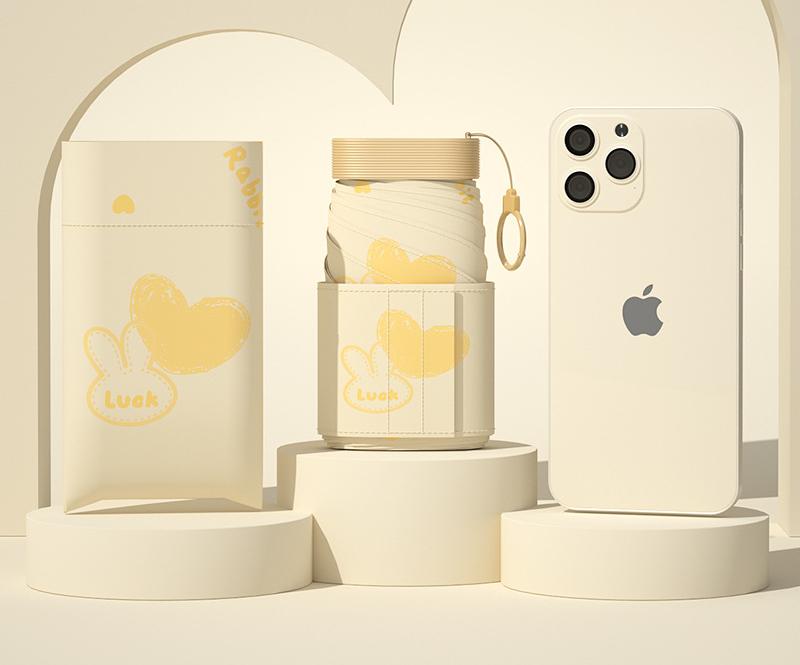 White Rabbit Mini 5-Fold Umbrella – Portable, Anti-UV, Black Glue Coating