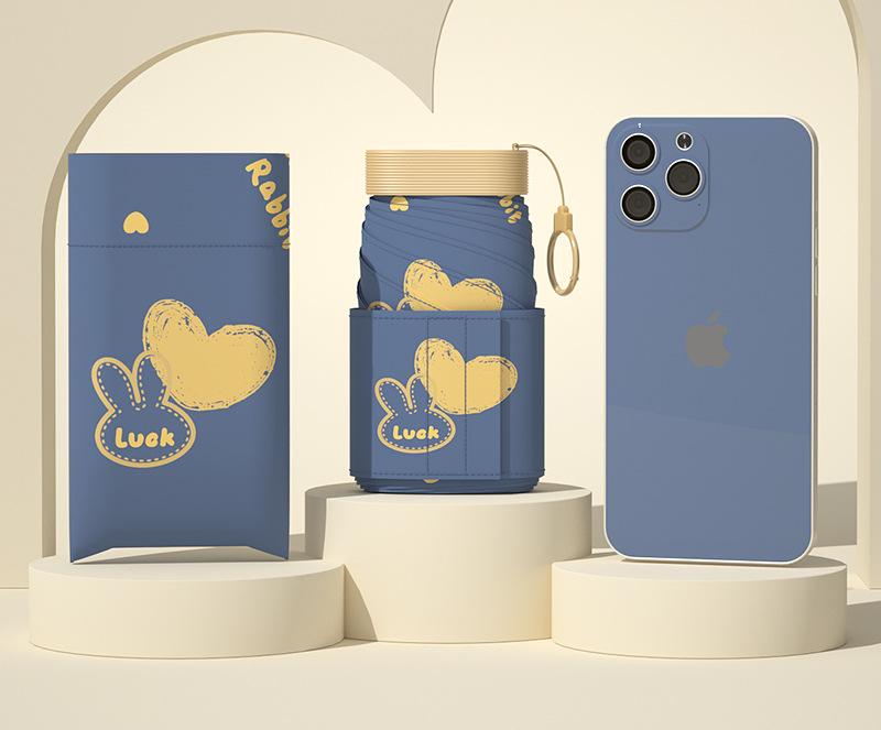 Ultra-Compact 7-Fold Folding Umbrella – UPF50+ Sun Protection & Portable Clip Design(Dark Blue)
