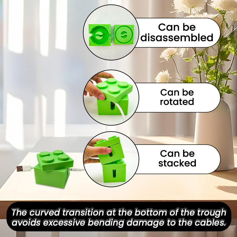 Playful Building Block Desk Cable Holder – Creative Cord Organizer Tidy, 2-Pack