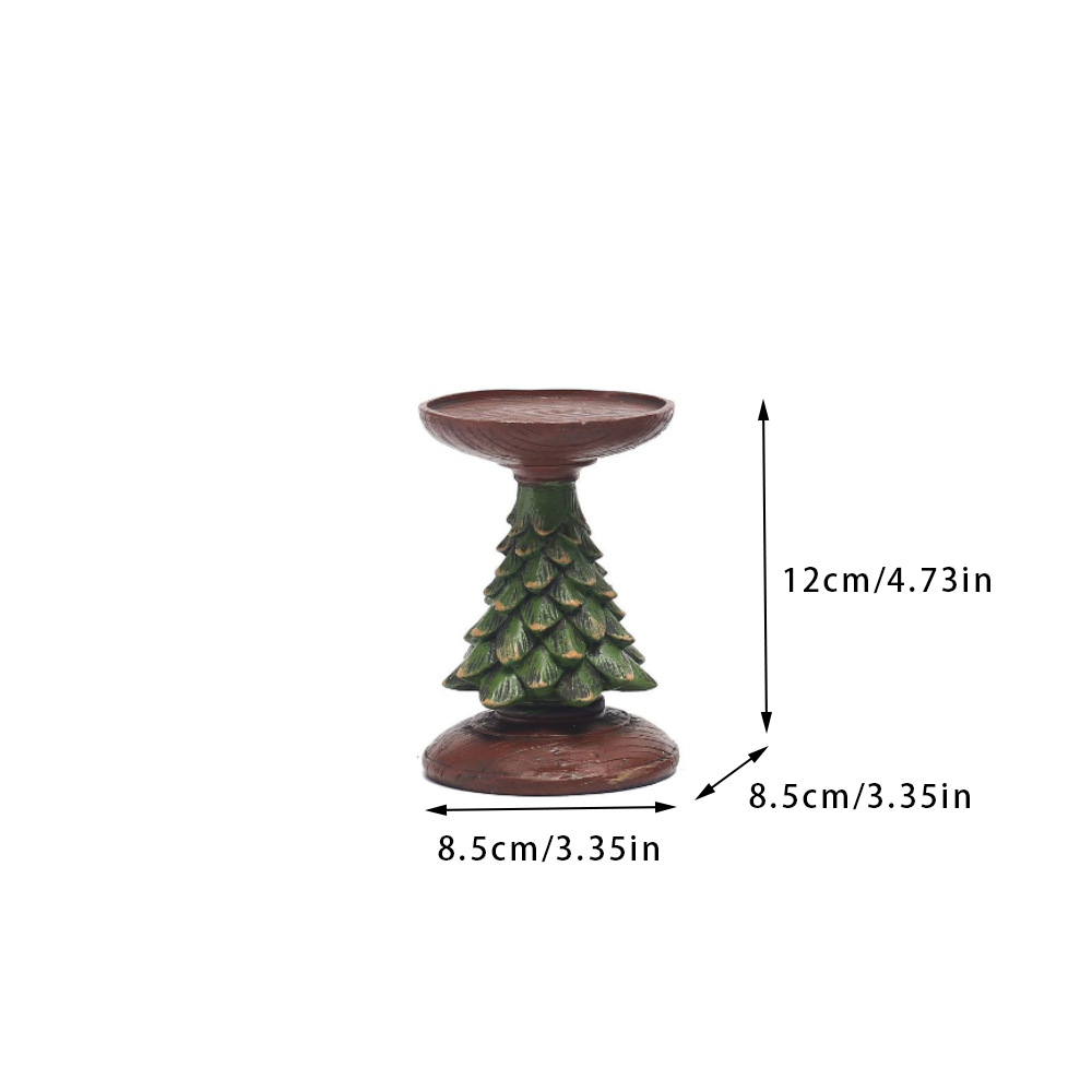 Christmas Tree Candle Holder – Rustic Resin Pillar Stand, 12cm Festive Decoration