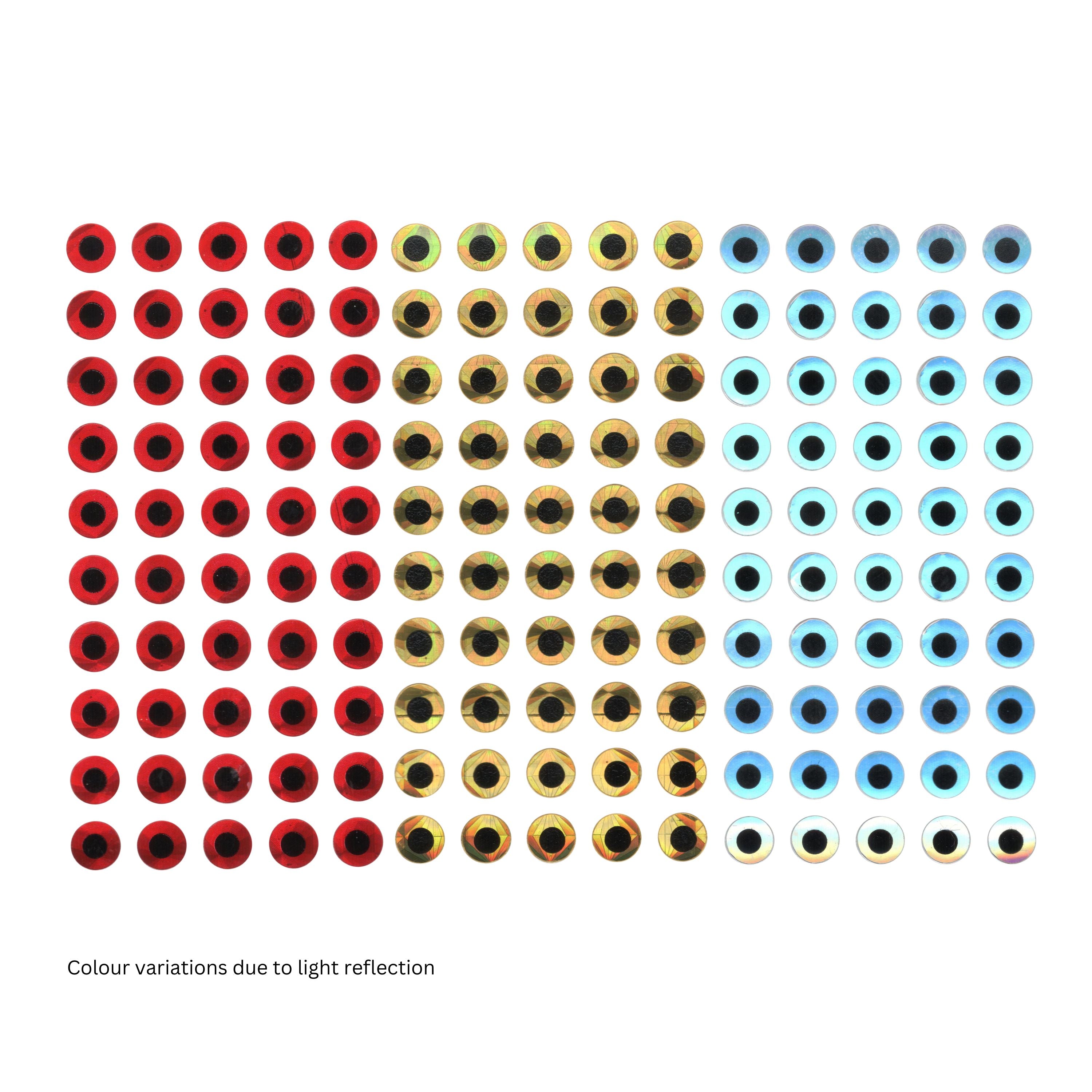 Artizan Flat Lure Eyes, 5mm, Gold/Red/Silver, Qty 150