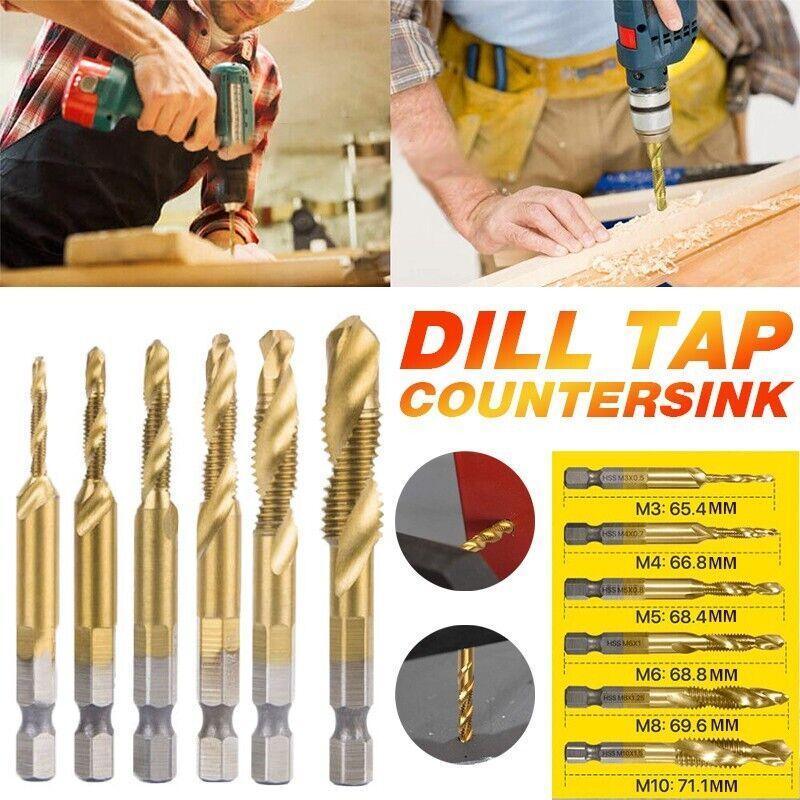 6X Hss Hex Shank Tap Drill Bits Metric Thread Screw Compound Tapping Set Tool