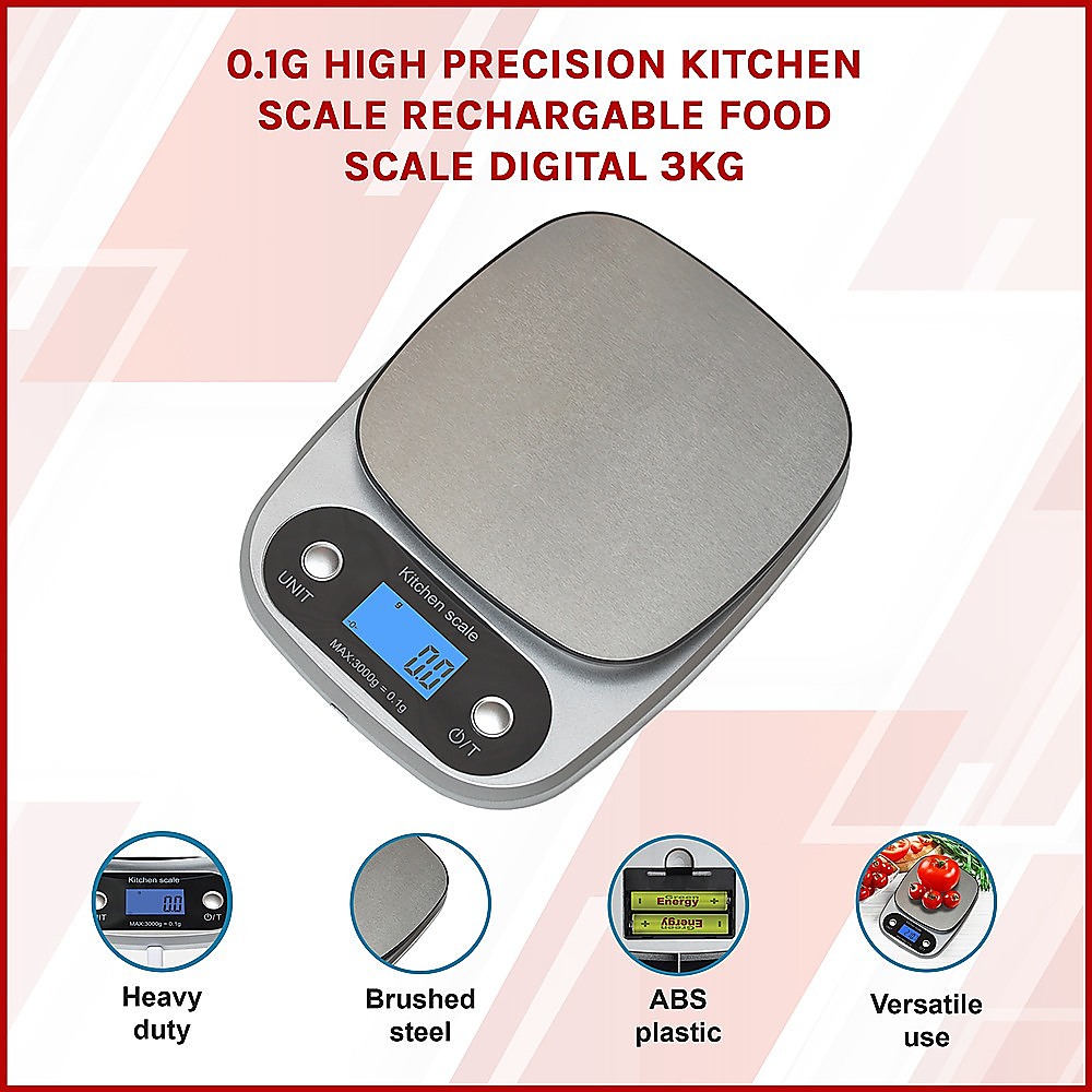 0.1g High Precision Kitchen Scale Rechargable Food Scale Digital 3KG