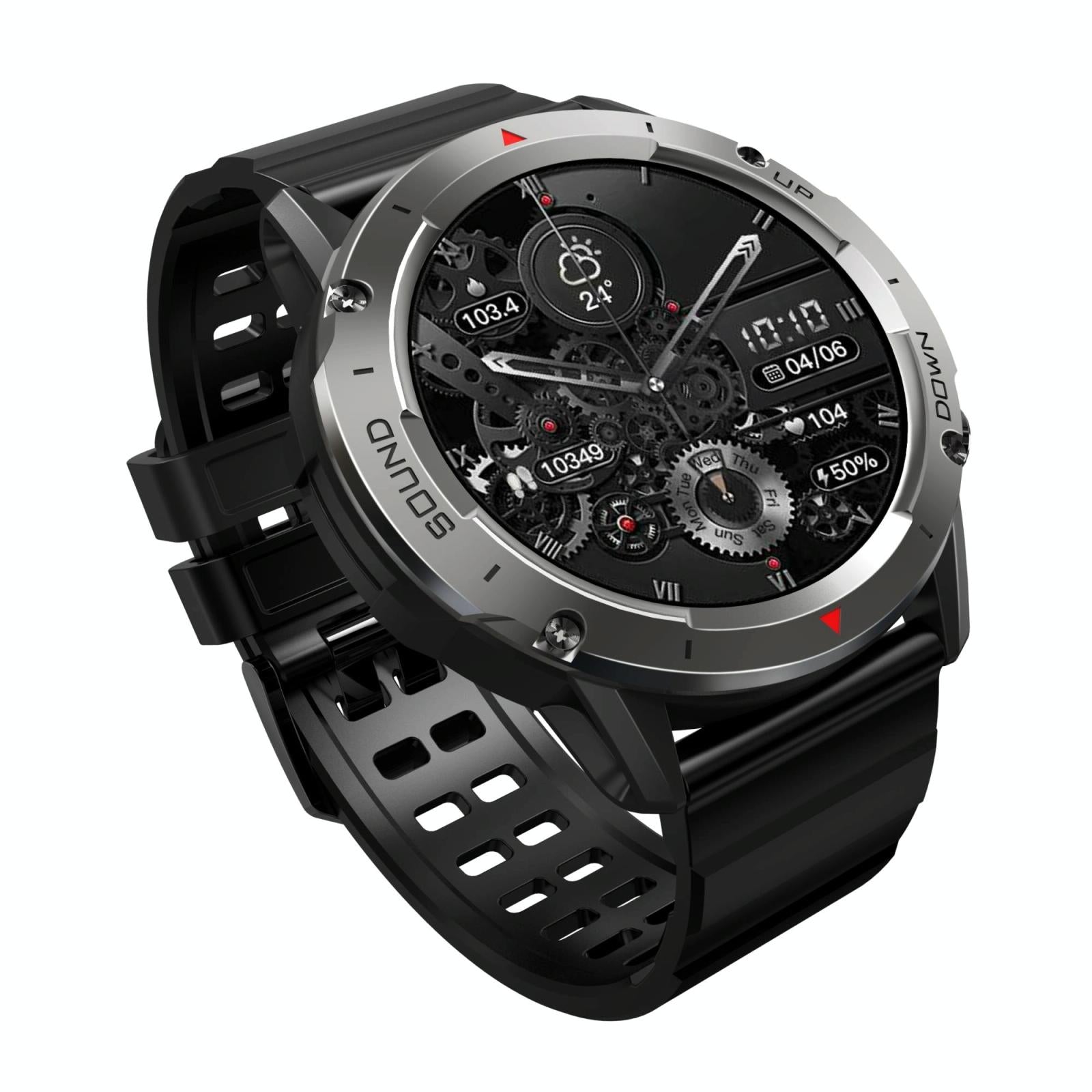 This smart watch features a 1.39-inch color screen with a resolution of 360×360, providing a clear display. It is equipped with a 400mAh battery for extended standby and usage time. The device supports Bluetooth 5.1 for stable connectivity and has an IP68 waterproof rating, making it resistant to water damage. It offers multiple language options and a variety of functions including Bluetooth calling, heart rate and blood pressure monitoring, blood oxygen measurement, pedometer, calorie and distance tracking, multiple sport modes, sleep monitoring, call and message reminders, task reminders, and music control.