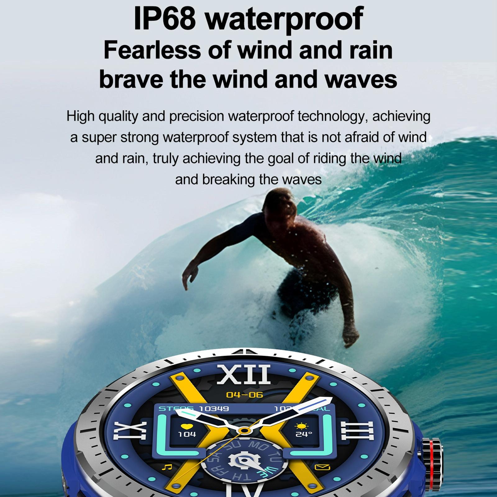 This smartwatch features a 1.43-inch AMOLED screen with an always-on display, providing clear and vibrant visuals. It supports Bluetooth 5.3 connectivity, NFC, and G-Sensor functions. The device offers message notifications and is compatible with various social media platforms. Its IP68 waterproof rating ensures durability in different environments.