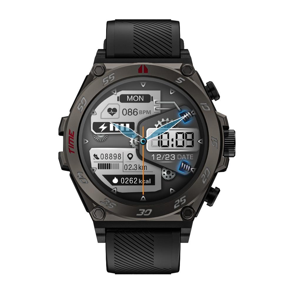 This smartwatch features a sporty business appearance with a metal craftsmanship design. It offers a comfortable wear with a high-end TPU sports strap and supports various health and activity monitoring functions. The device includes built-in music storage, dual operation via full circle touch and mechanical button, and a precise encoder knob for easy navigation. Equipped with BLE 5.0, it provides a strong and stable Bluetooth connection. The large 400mAh battery ensures long-lasting use, supporting 24-hour heart rate monitoring, blood pressure, blood oxygen levels, activity tracking, calorie consumption, and sleep records. It also offers message reminders, remote photography control, and customizable watch faces for personalization.