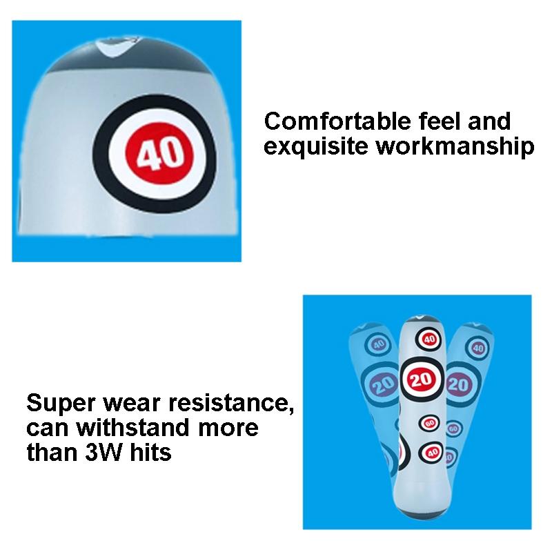 This inflatable boxing pillar sandbag is designed for both adults and children, providing a safe and fun way to practice punching and tumbling. Made from food-grade PVC, it is durable, lightweight, and easy to use. The stable base can be filled with water, sand, or other particles to ensure safety during use. Its soft buffer structure allows for safe punching without gloves, and it can be easily inflated, deflated, folded, and stored for convenience.