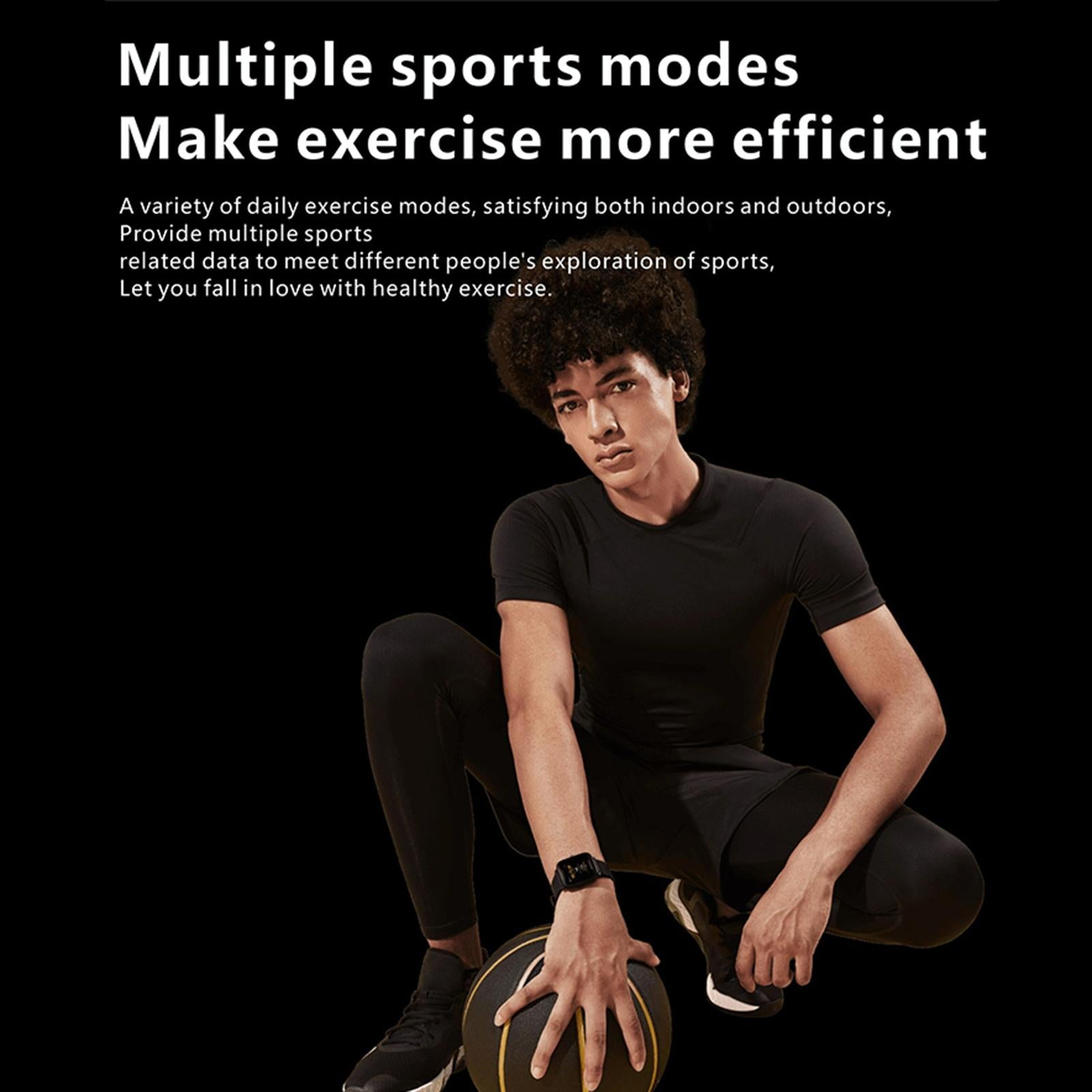 This smartwatch features a 1.7-inch high-definition TFT screen with a resolution of 240×280, offering clear and vibrant visuals. It supports Bluetooth calling, blood pressure monitoring, heart rate tracking, blood oxygen saturation measurement, and multiple sports modes. The device is designed with durable materials including alloy, ABS, and silicone, and is IP67 waterproof, making it suitable for daily use and various activities. It provides a long standby time of approximately 35 days and a working time of 5-7 days on a single charge, powered by a 230mAh high-capacity polymer battery. Additional features include weather forecast, flashlight, clock display, alarm clock, music playback, and activity tracking for distance and calories burned.