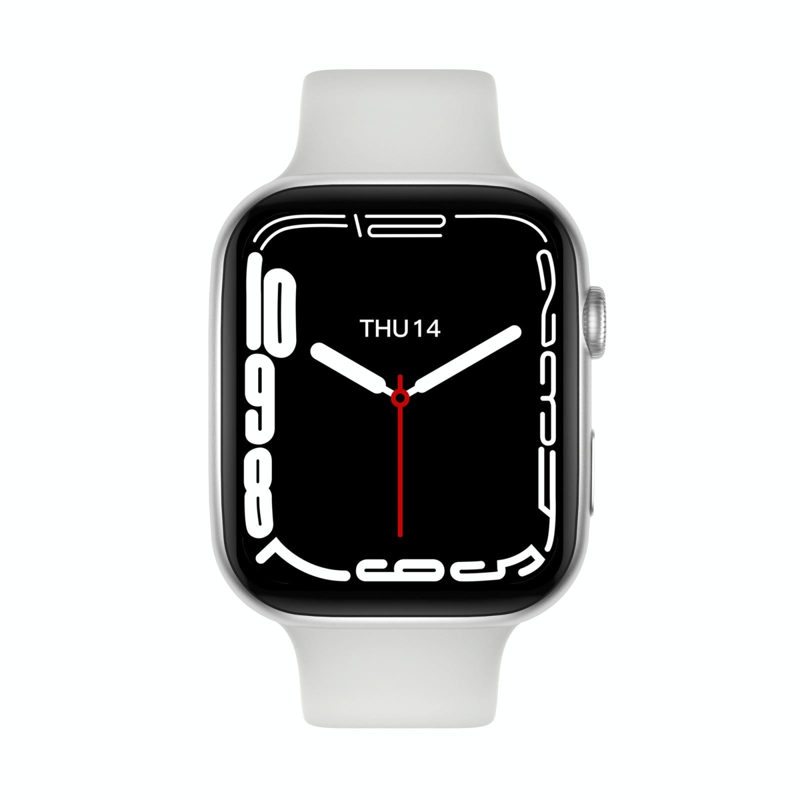 This smartwatch features a 1.75-inch TFT LCD screen with a resolution of 320×320, supporting blood pressure and sleep monitoring. It is made from high-quality materials including zinc alloy, electroplating, ABS, IML, and silicone, ensuring durability and comfort. Equipped with a powerful CPU and Bluetooth 5.0 technology, it offers a range of functions such as Bluetooth dialing, music control, remote photo, step counting, multi-sport modes, weather forecast, and health monitoring features including heart rate, blood pressure, and blood oxygen levels. The device supports wireless charging and has a long-lasting battery life, providing 7-10 days of usage and up to 30 days of standby time.