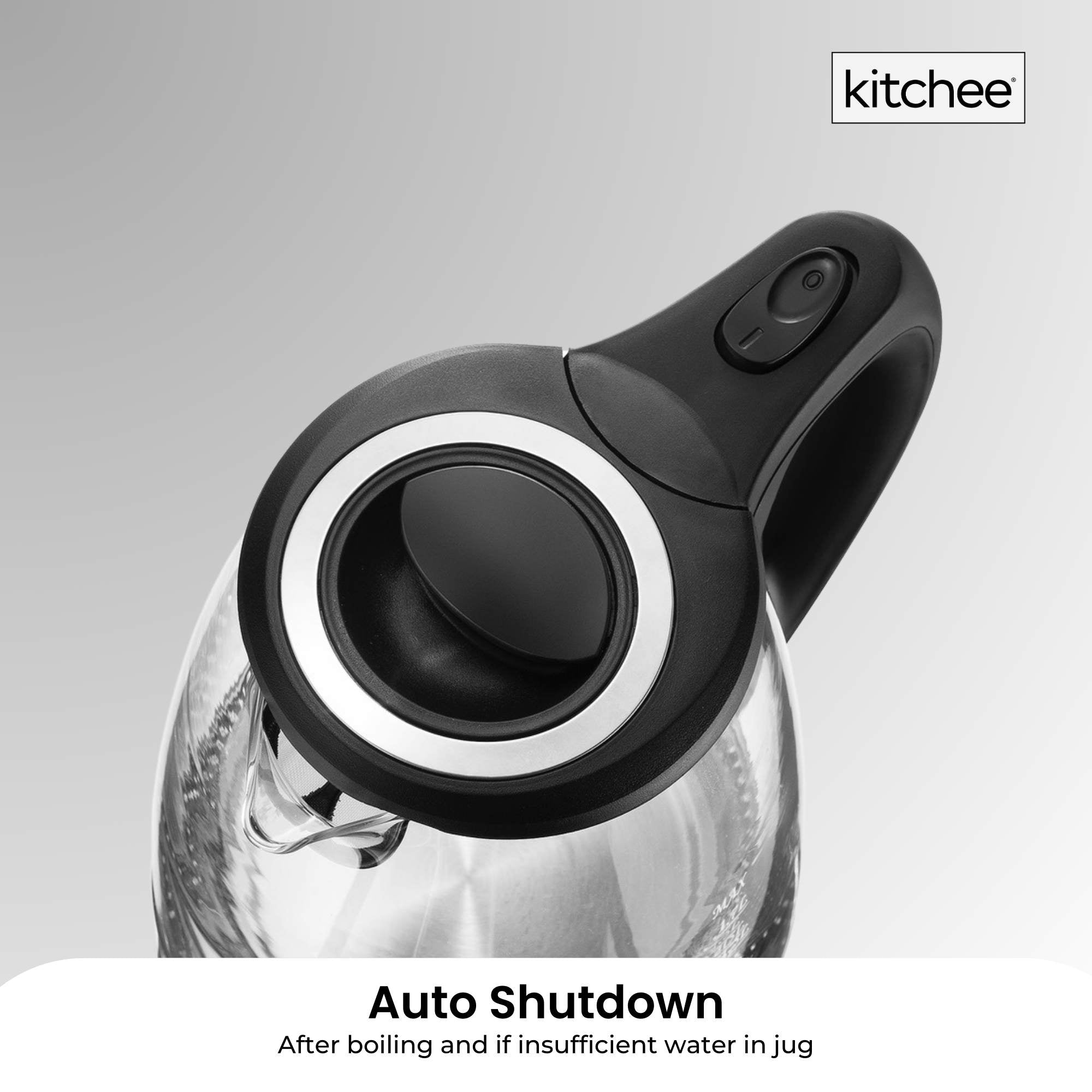 1.7L Electric Glass Kettle LED Blue Light 360 Automatic Cordless Water Boiling Jug