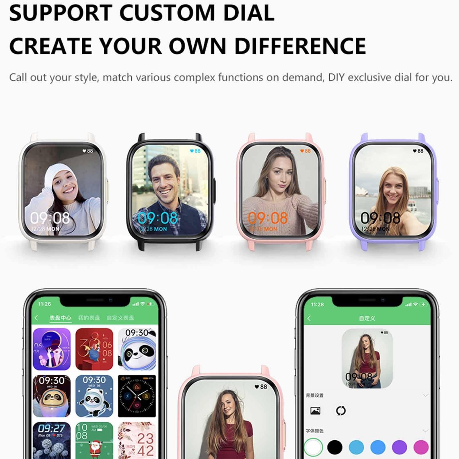 - Supported Features: Sleep monitoring, heart rate, blood pressure, blood sugar, blood oxygen, temperature detection, data tracking, female cycle, sedentary reminder, call and message notifications, music control, alarm clock
