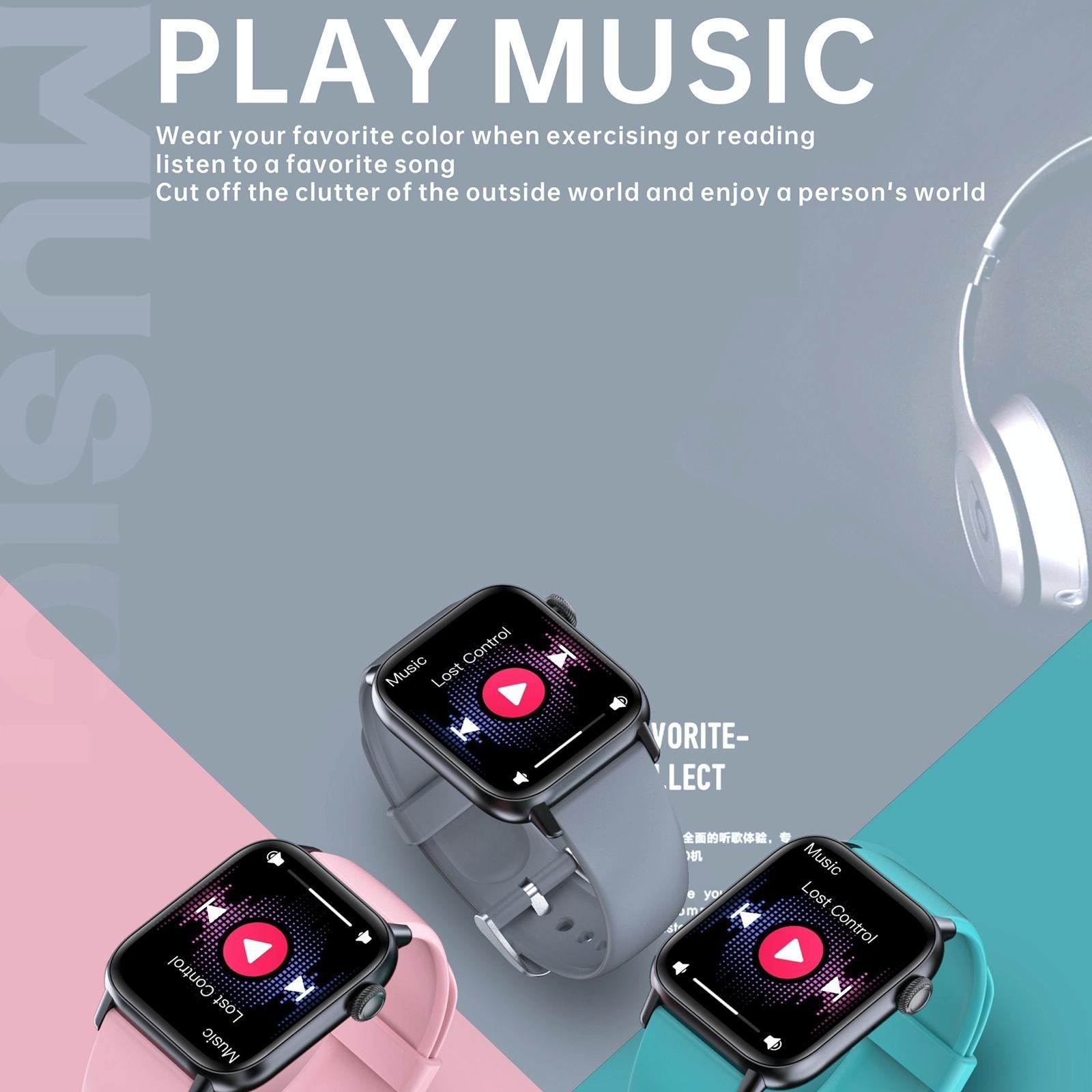 - Functions: Sleep monitoring, heart rate, blood pressure, blood oxygen, temperature detection, sports modes, breathing exercises, countdown, alarm, menstrual cycle tracking, sedentary reminder, Bluetooth call, remote photography
