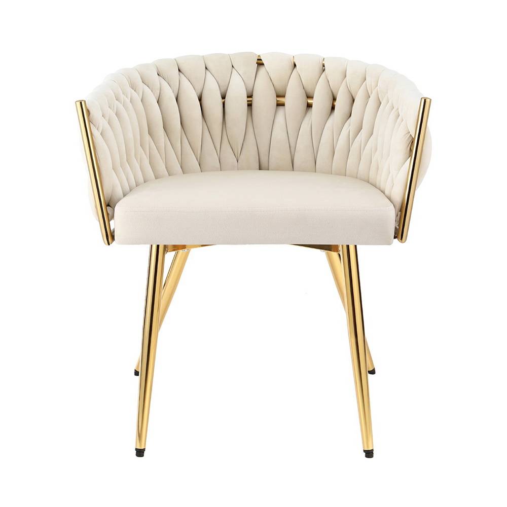 This dining chair combines modern design with luxurious comfort, making it a versatile addition to any dining area or other living spaces. Crafted with a solid wood frame and upholstered in plush velvet, it offers both style and durability. The chair features a hand-woven backrest, cushioned seat with high-resilience foam, and sturdy steel legs with anti-slip pads for stability and floor protection. Its sleek appearance and reliable construction make it suitable for various settings and capable of supporting up to 150kg.