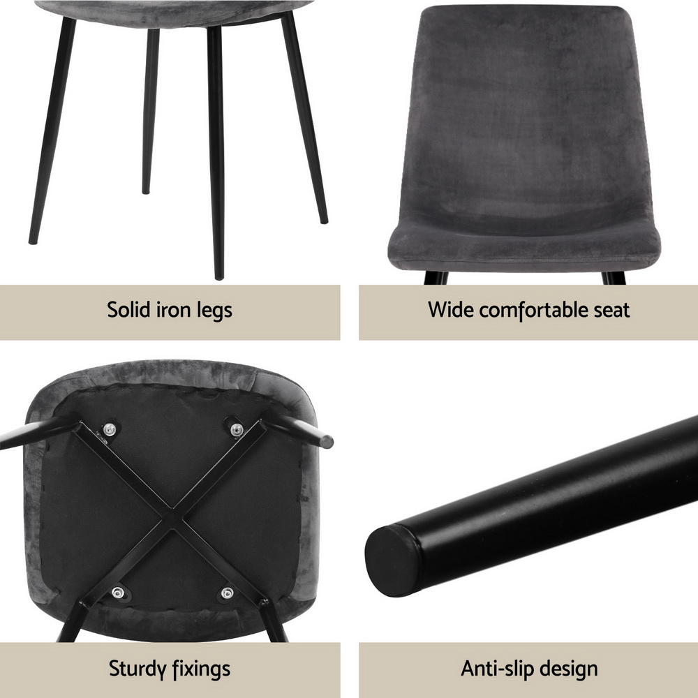 1 Artiss Dining Table and 4 Chairs Set Grey Velvet