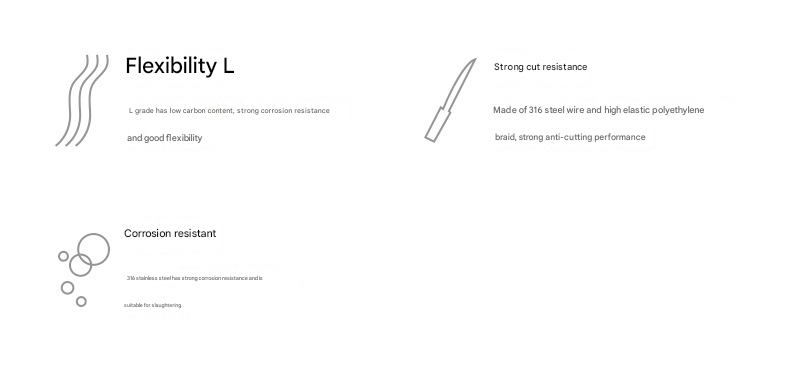 - Offers high cut resistance for safety in slaughtering and fish processing
