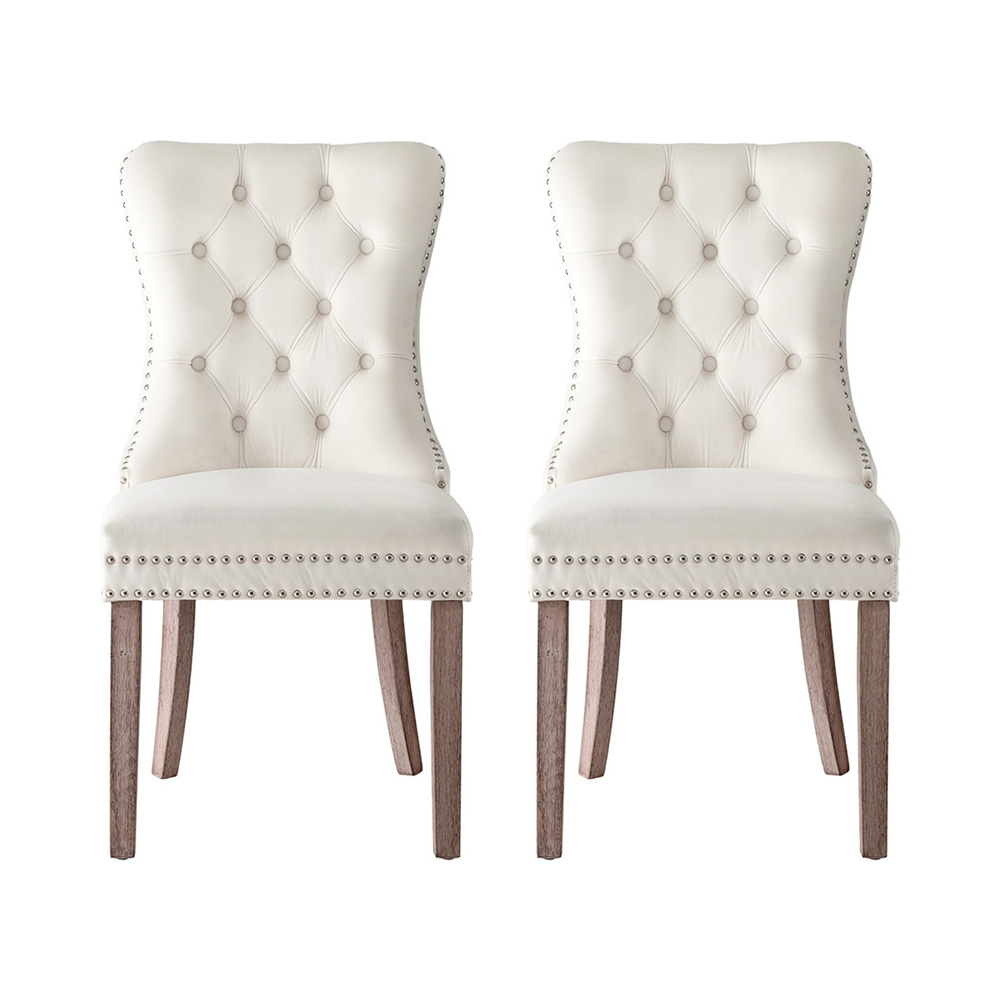 1 Set of 2 Artiss Dining Chairs Beige Velvet