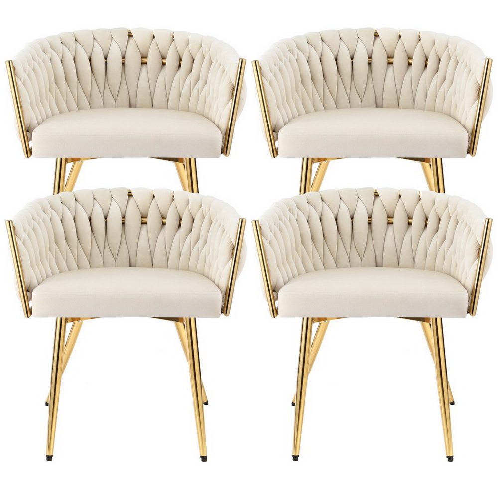 1 Set of 4 Artiss Dining Chairs Velvet Armchair Beige