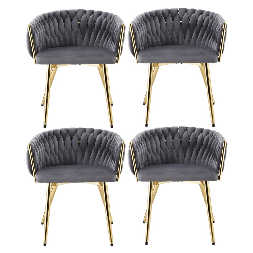 1 Set of 4 Artiss Dining Chairs Velvet Armchair Grey