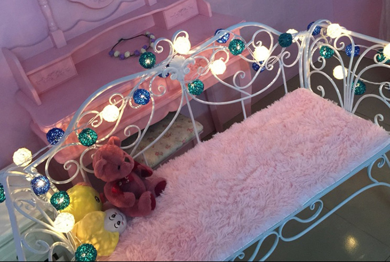 1 Set of Blue n White 5cm Rattan Cane 50 Ball Battery Powered LONG 5m String Lights Christmas Gift Home Wedding Party Bedroom Decoration Table Centrepiece