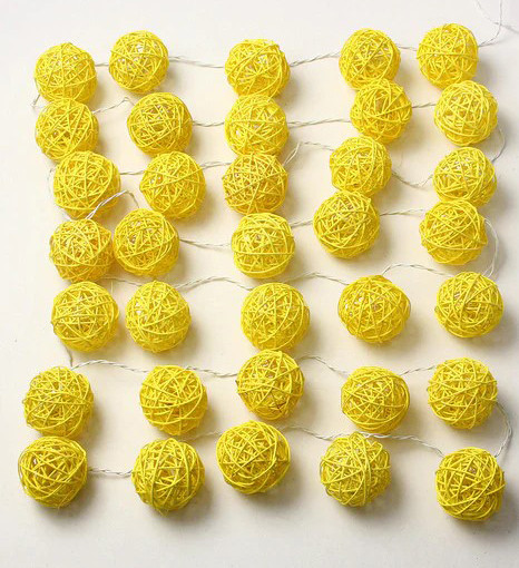 • 1 set of yellow rattan ball string lights with 50 LED bulbs