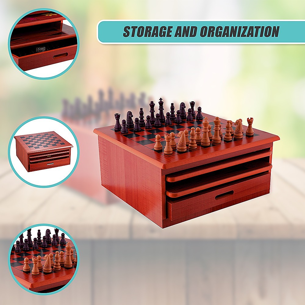 10 in 1 Wooden Chess Board Games Slide Out Checkers House Unit Set