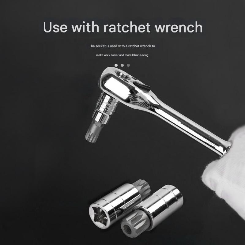 This 10-piece M-Type Spline Bit Socket Set is crafted from high-quality chrome steel, offering durability and resistance to wear. It features a comprehensive range of sizes suitable for various automotive, mechanical, and industrial tasks. The set is designed for robust performance and easy organization, making it ideal for both professionals and DIY enthusiasts.