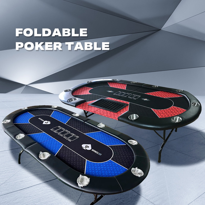 10 Player Foldable Red Color Poker Table Blackjack Texas Holdem Table with Cup Holders