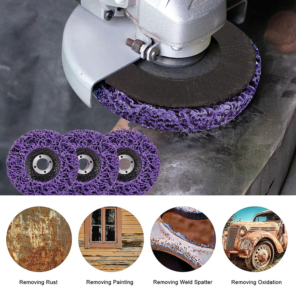This product includes a set of grinding wheels designed for removing paint, rust, and coatings from various surfaces. They are suitable for use with angle grinders and are made from durable materials to ensure effective and efficient cleaning and surface preparation.